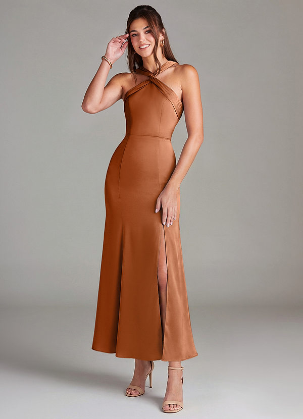 Reminiscent of the rustic charm of a homey farmhouse, Copper is great choice for your bridesmaids. Copper bridesmaid dresses exudes sweet elegance, making it perfect for an outdoor or indoor wedding. Complete the look with a braided up-do and soft and feminine makeup.