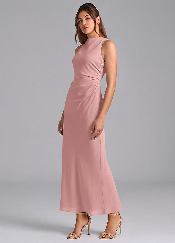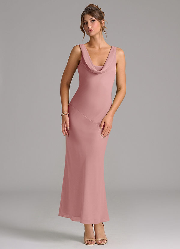 My wedding theme was inspired by classic Greece which is why I chose dusty rose as one of my wedding colors. My bridesmaids wore the Georgia in dusty rose which they accessorized with gold jewelry and a thin flowery tiara. It matched by long lacy ivory wedding dress and my husband's khaki suit.