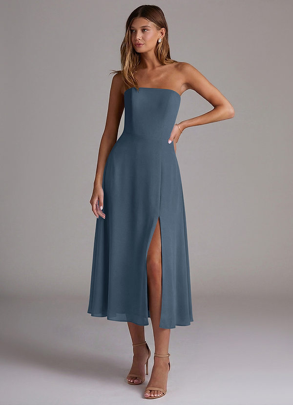 A라인 스트랩리스 쉬폰 티 길이 드레스