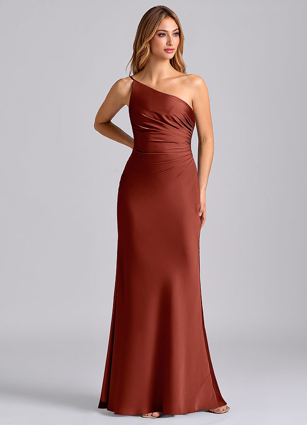 A라인 한쪽 어깨 스트레치 새틴 바닥 길이 드레스