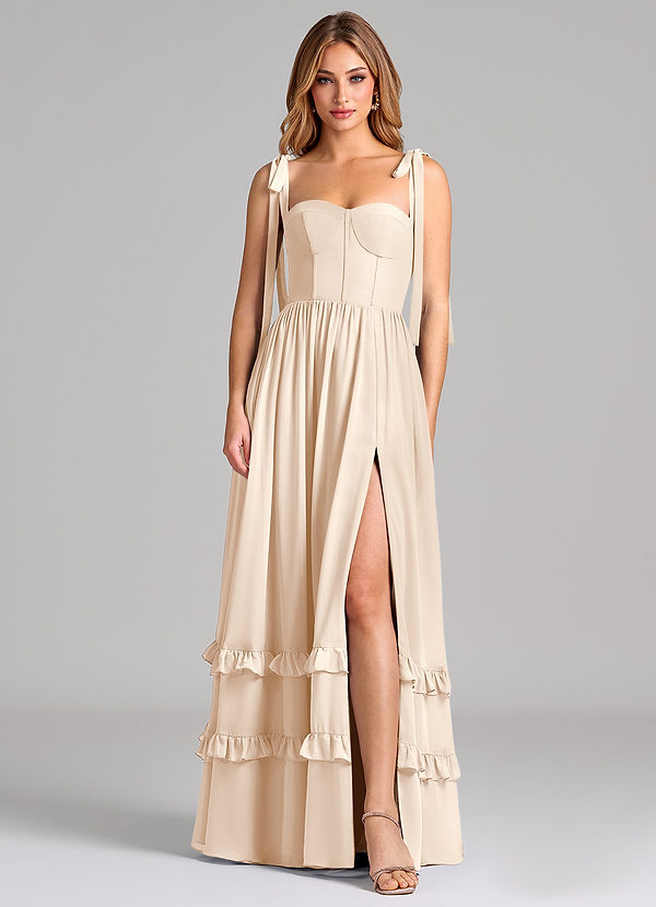 A라인 코르셋 쉬폰 바닥 길이 드레스