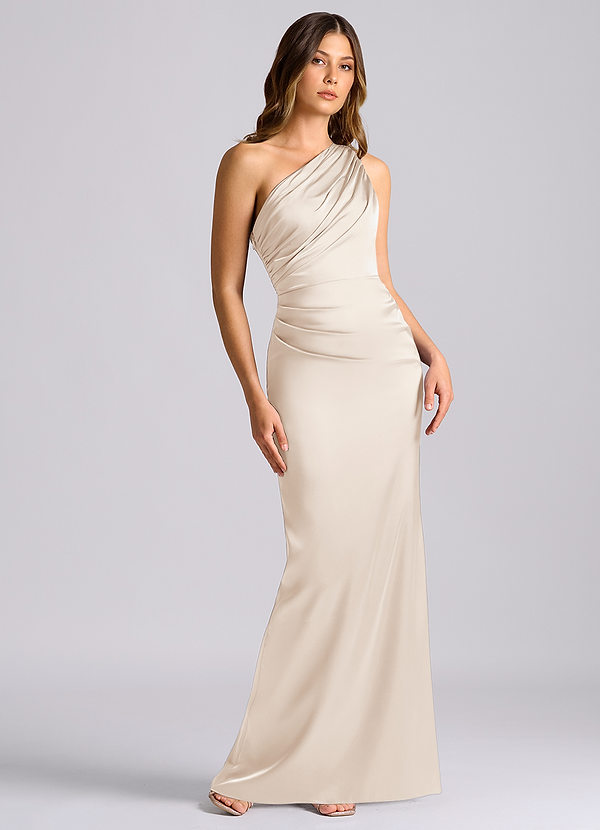 A라인 한쪽 어깨 스트레치 새틴 바닥 길이 드레스