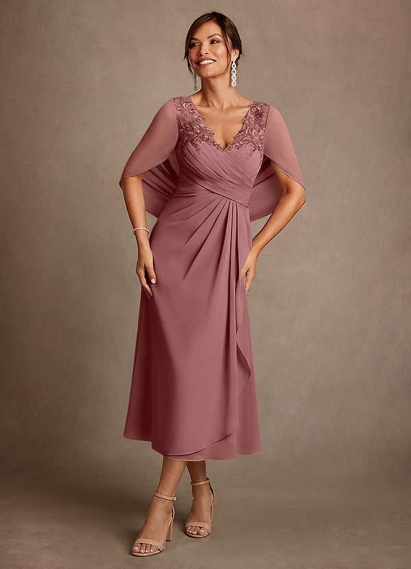 A라인 레이스 쉬폰 티 길이 드레스
