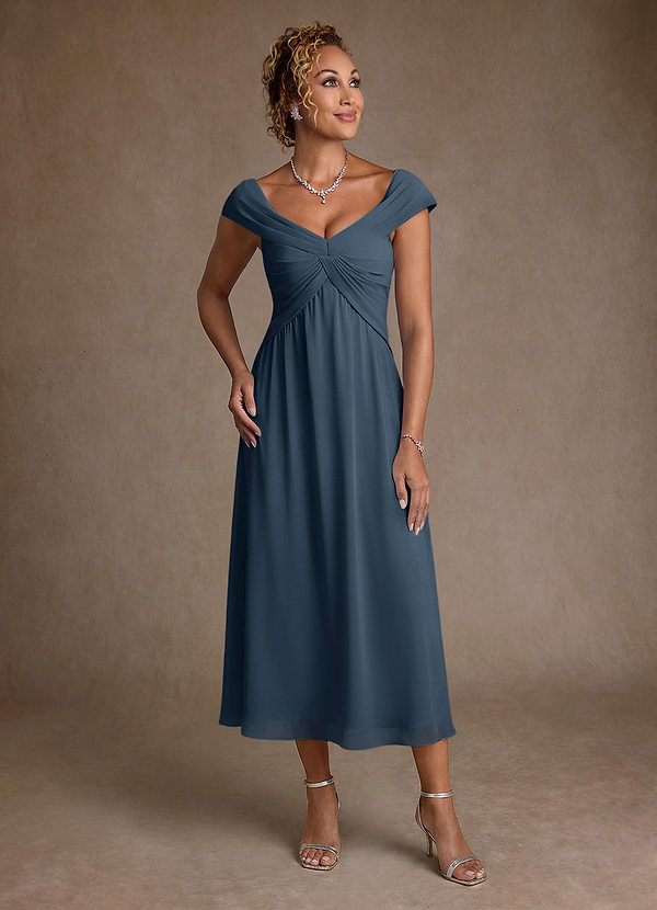 A라인 오프 더 숄더 쉬폰 플로어 길이 드레스