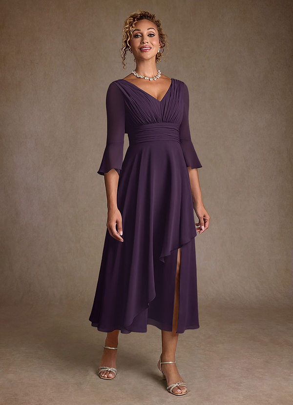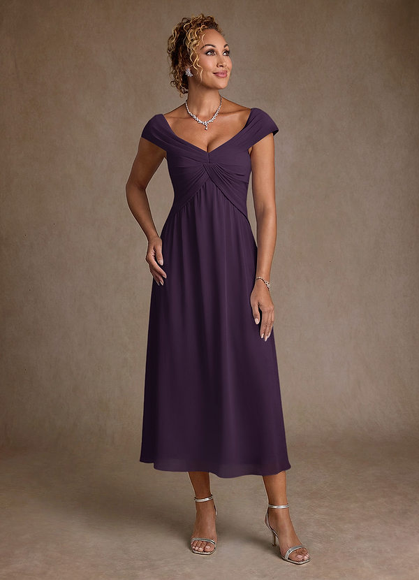 A라인 주름진 쉬폰 티 길이 드레스