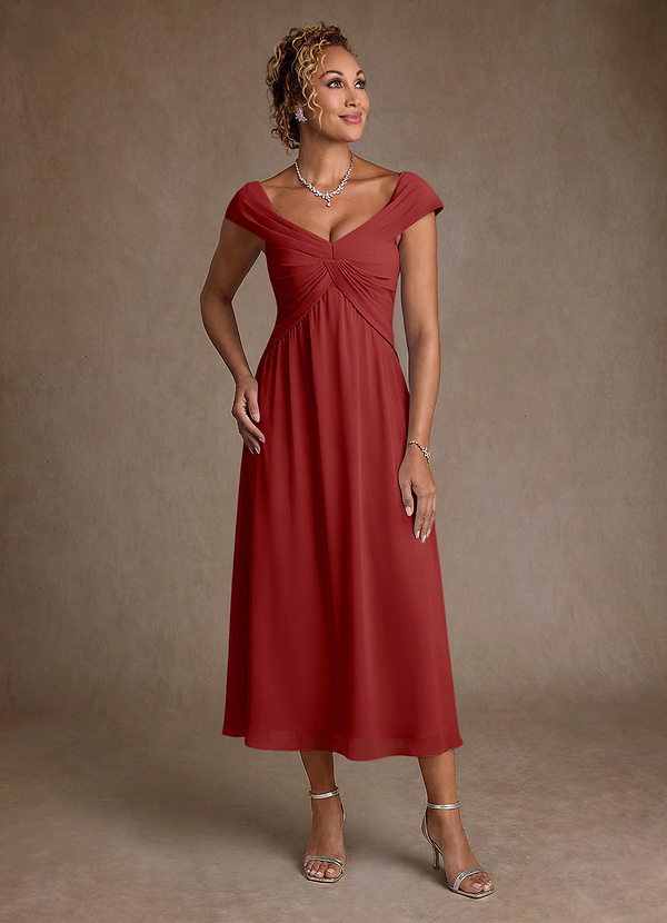A라인 주름진 쉬폰 티 길이 드레스