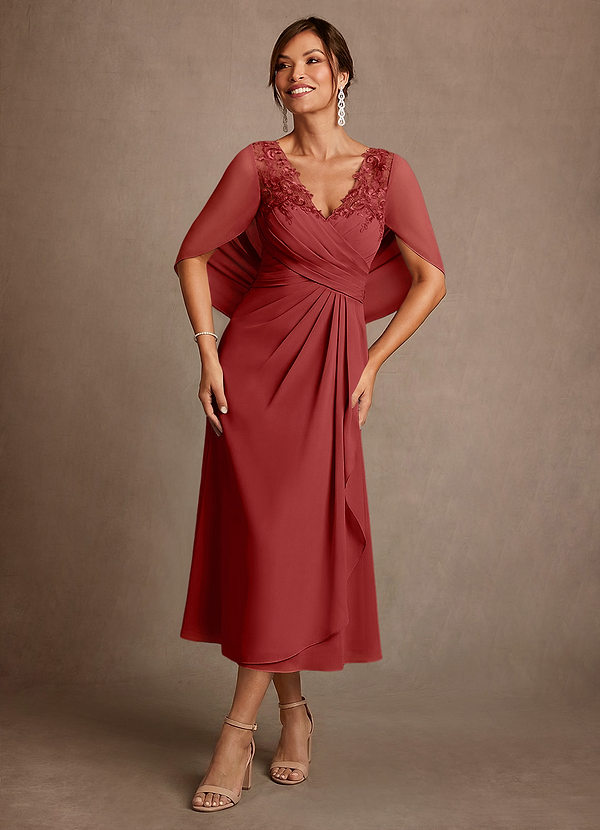 A라인 레이스 쉬폰 티 길이 드레스