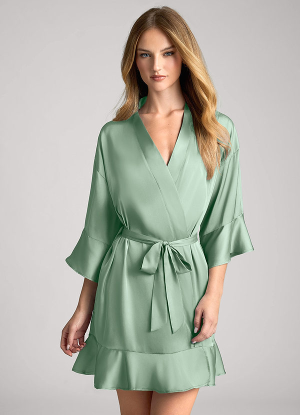 더스티 세이지 새틴 레이스 장식 소매 가운