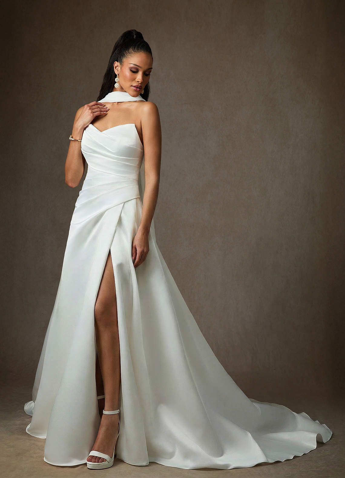 A라인 새틴 채플 트레인 드레스