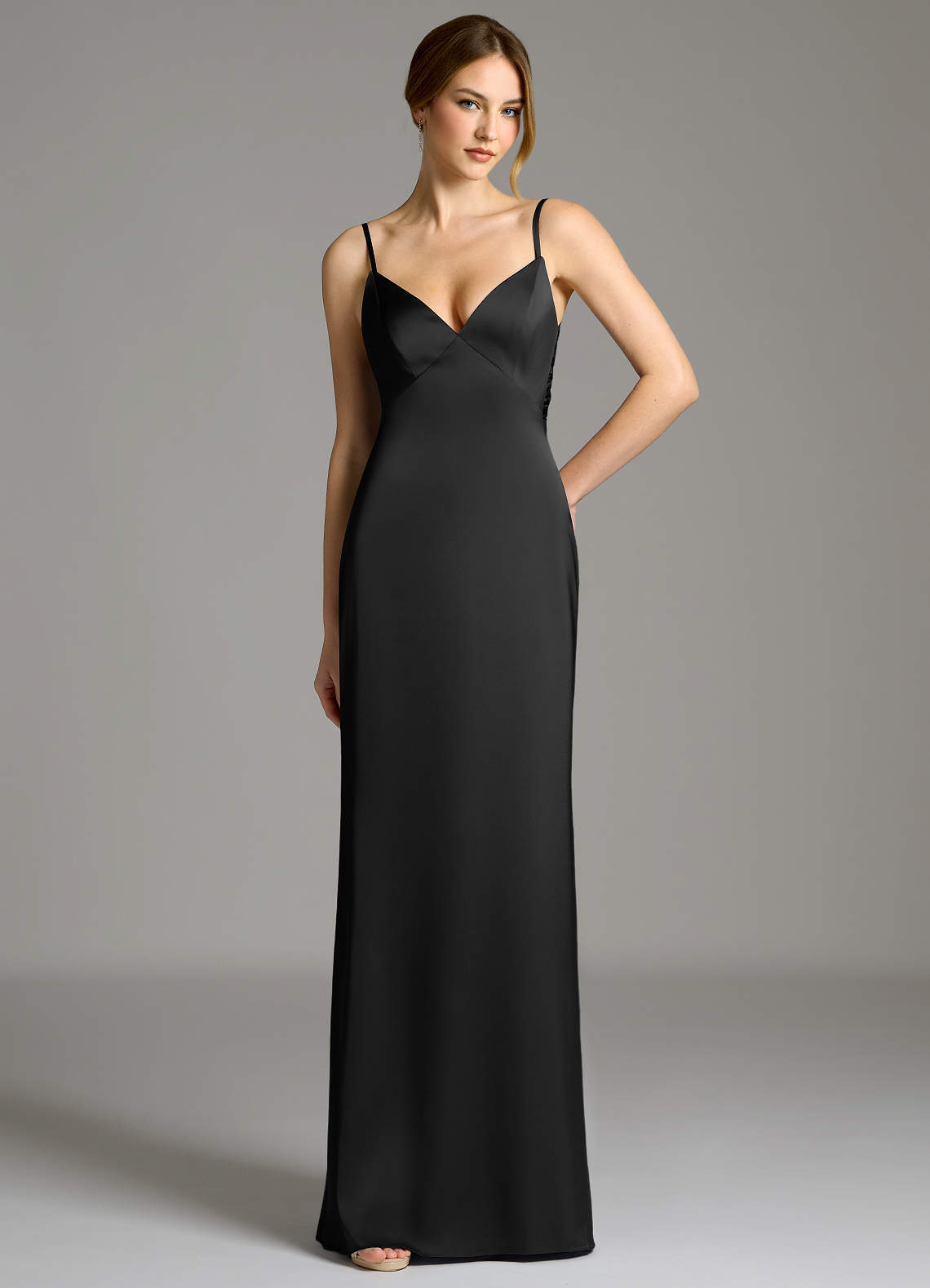 쉬스 절하다 스트레치 새틴 바닥 길이 드레스