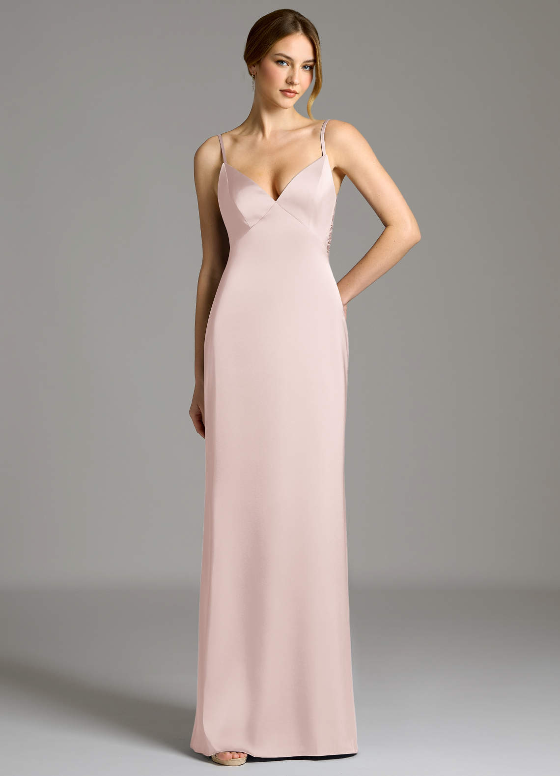 Azazie Adriane 신부 들러리 드레스 쉬스 절하다 스트레치 새틴 바닥 길이 드레스 image1