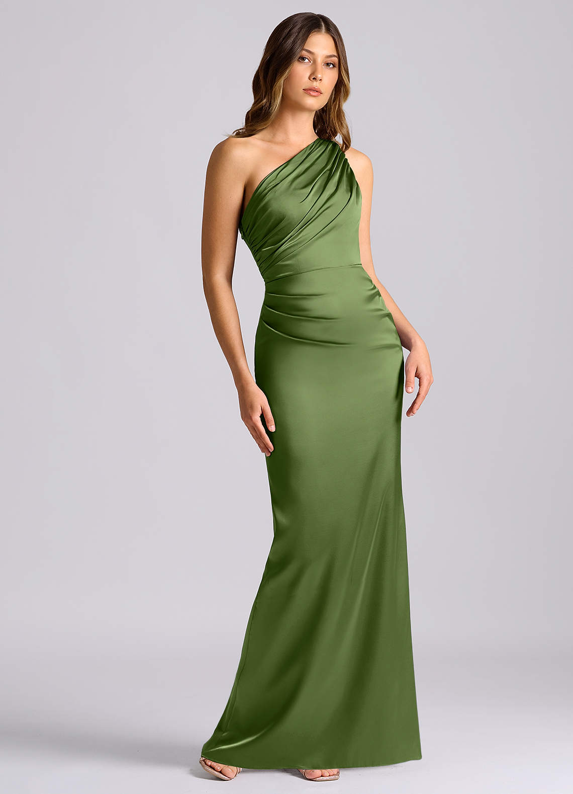 인어 한쪽 어깨 스트레치 새틴 바닥 길이 드레스