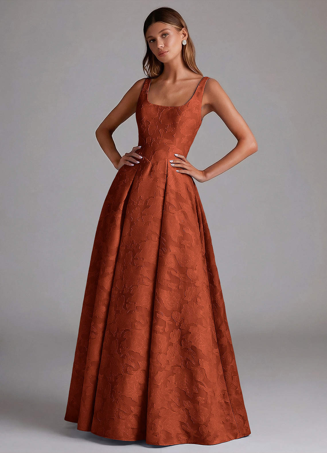 A라인 주름진 플로럴 번아웃 바닥 길이 드레스