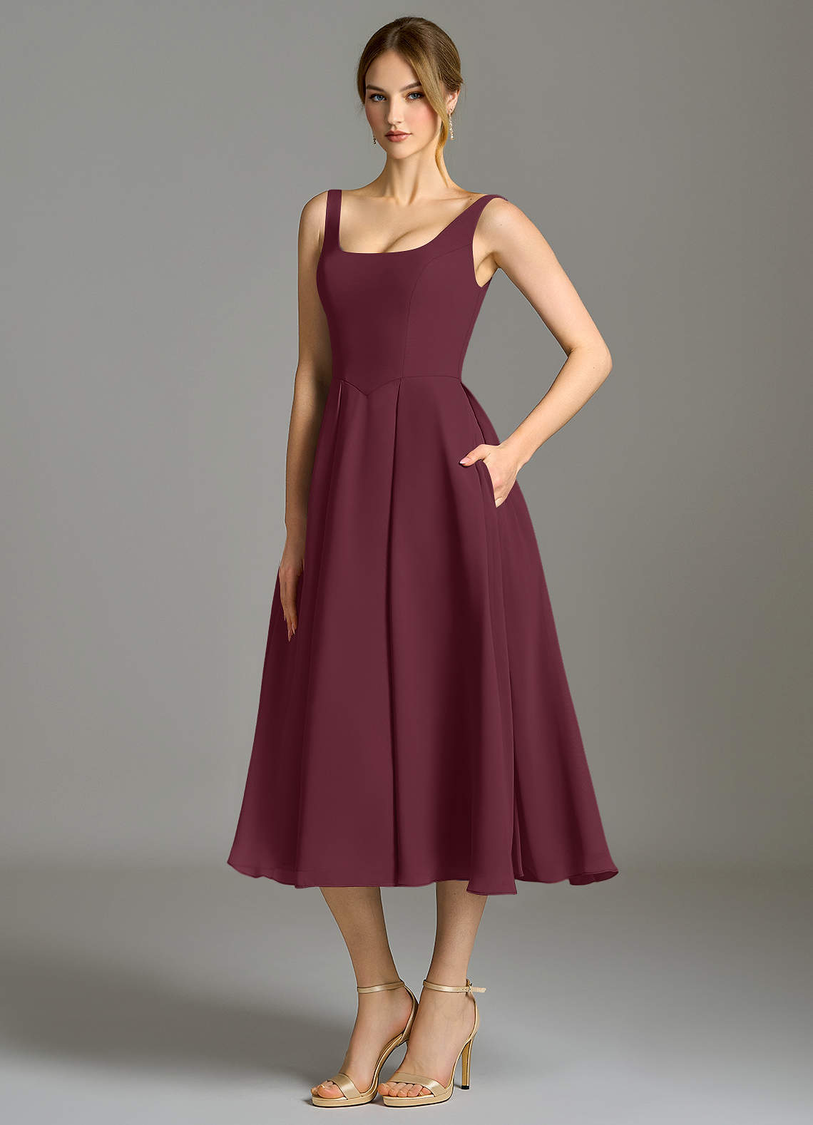 Azazie Amalie 신부 들러리 드레스 A라인 주름진 쉬폰 티 길이 드레스 image1