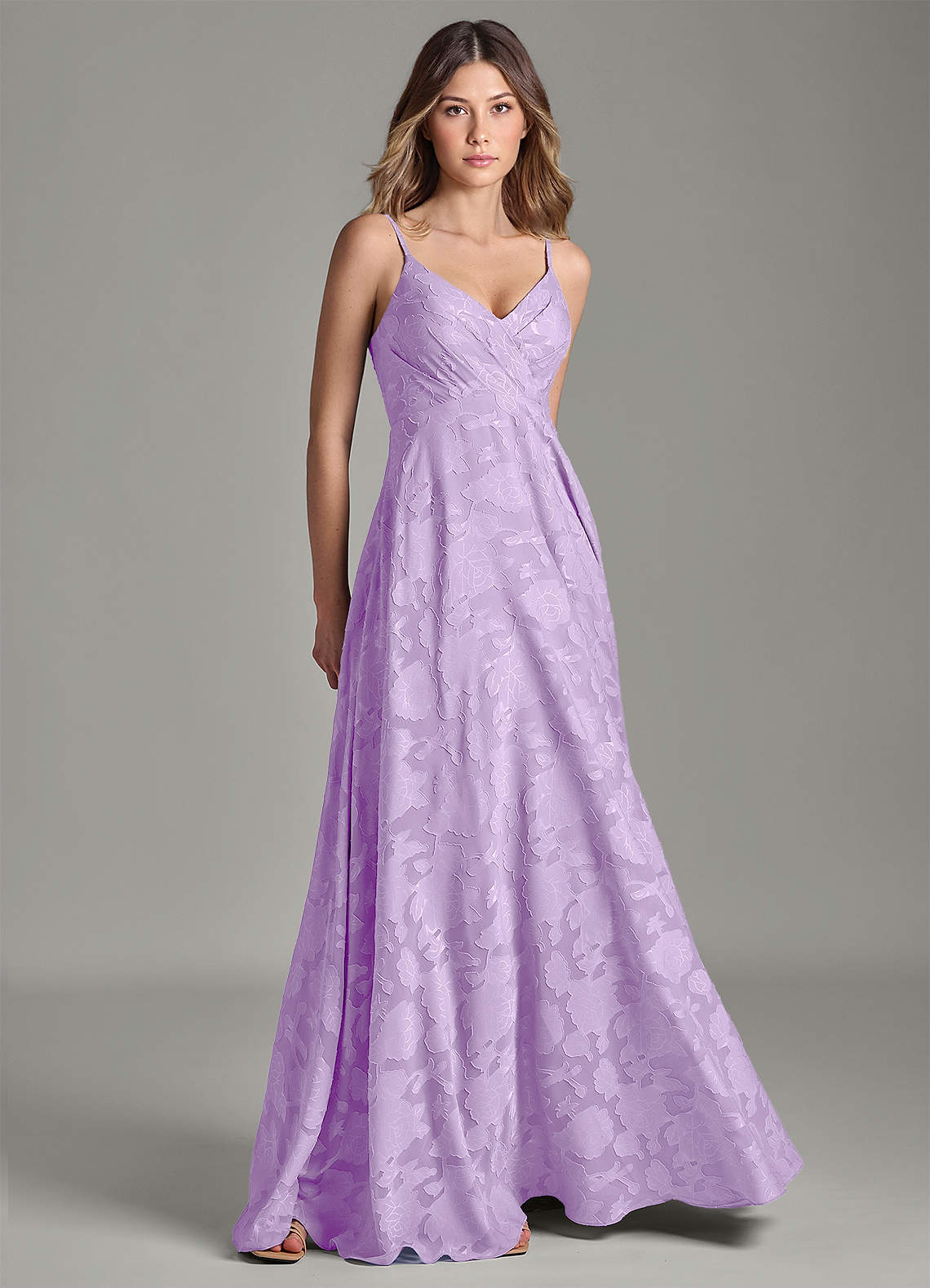 A라인 주름진 플로럴 번아웃 바닥 길이 드레스