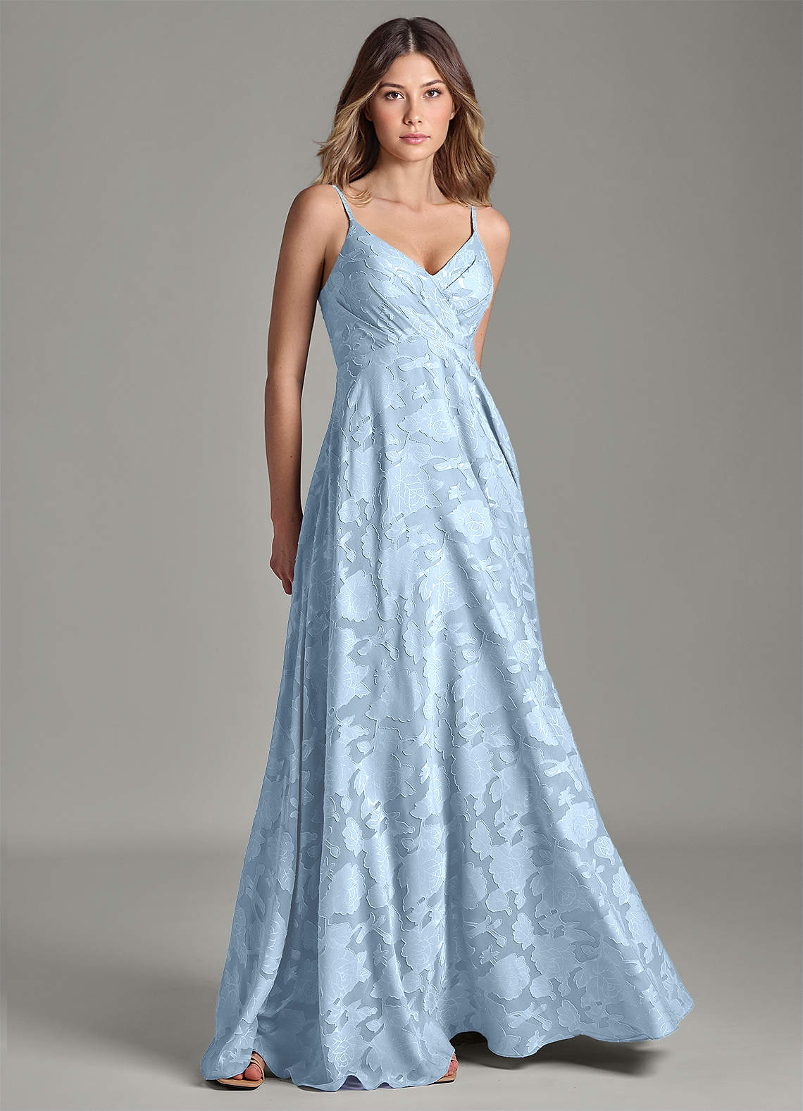 A라인 주름진 플로럴 번아웃 바닥 길이 드레스