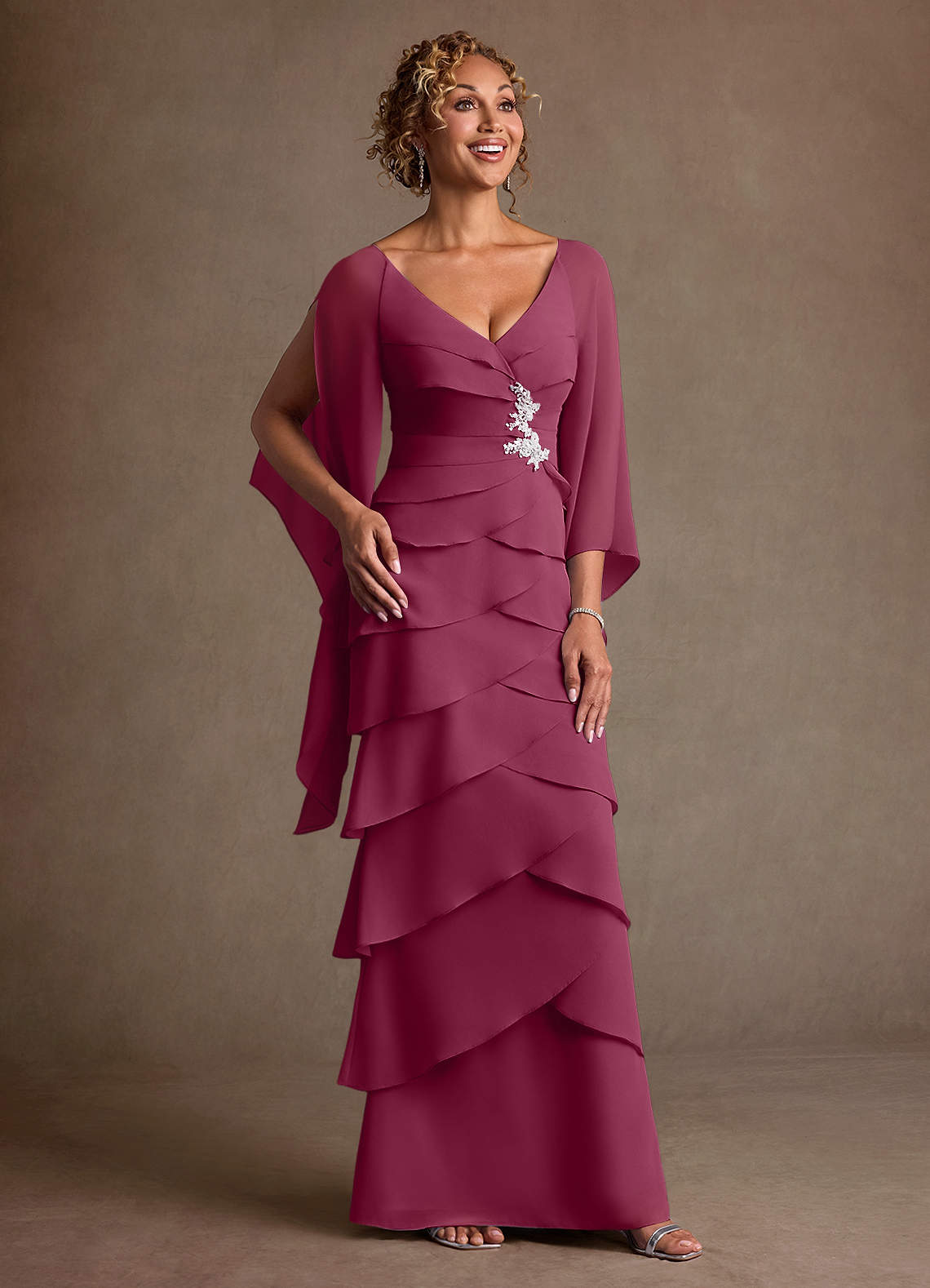 쉬스 셔링 쉬폰 플로어 길이 드레스