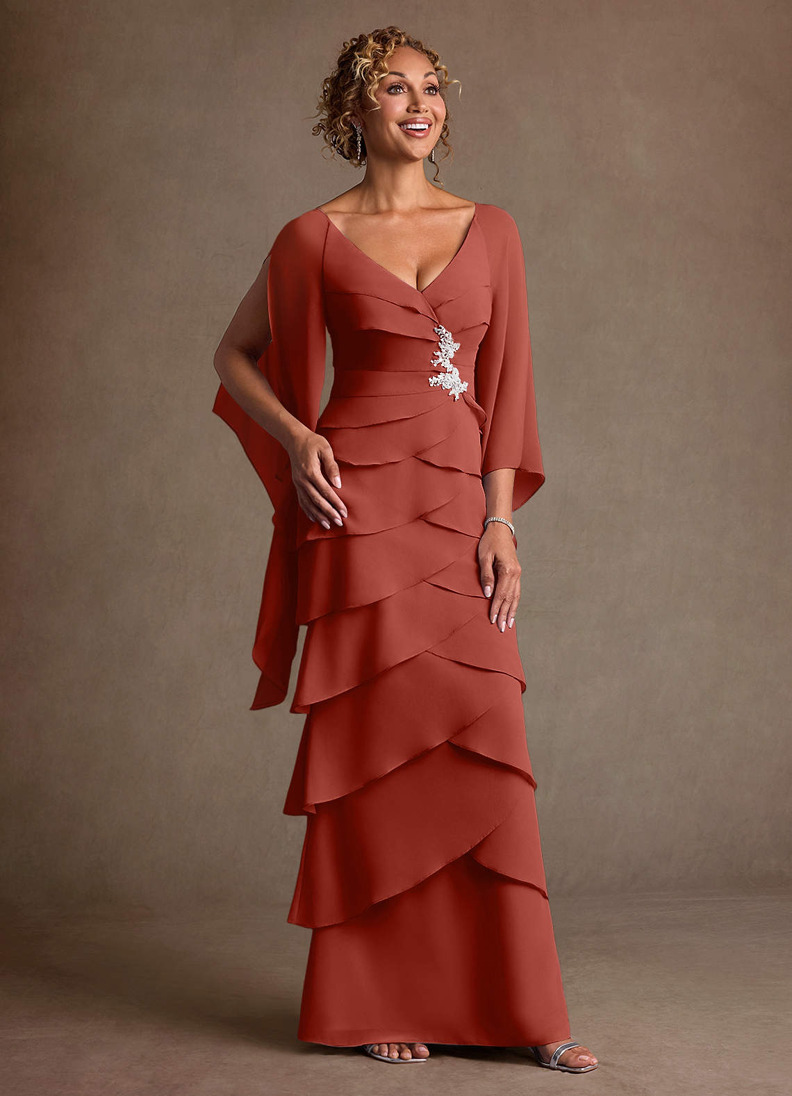 쉬스 셔링 쉬폰 플로어 길이 드레스