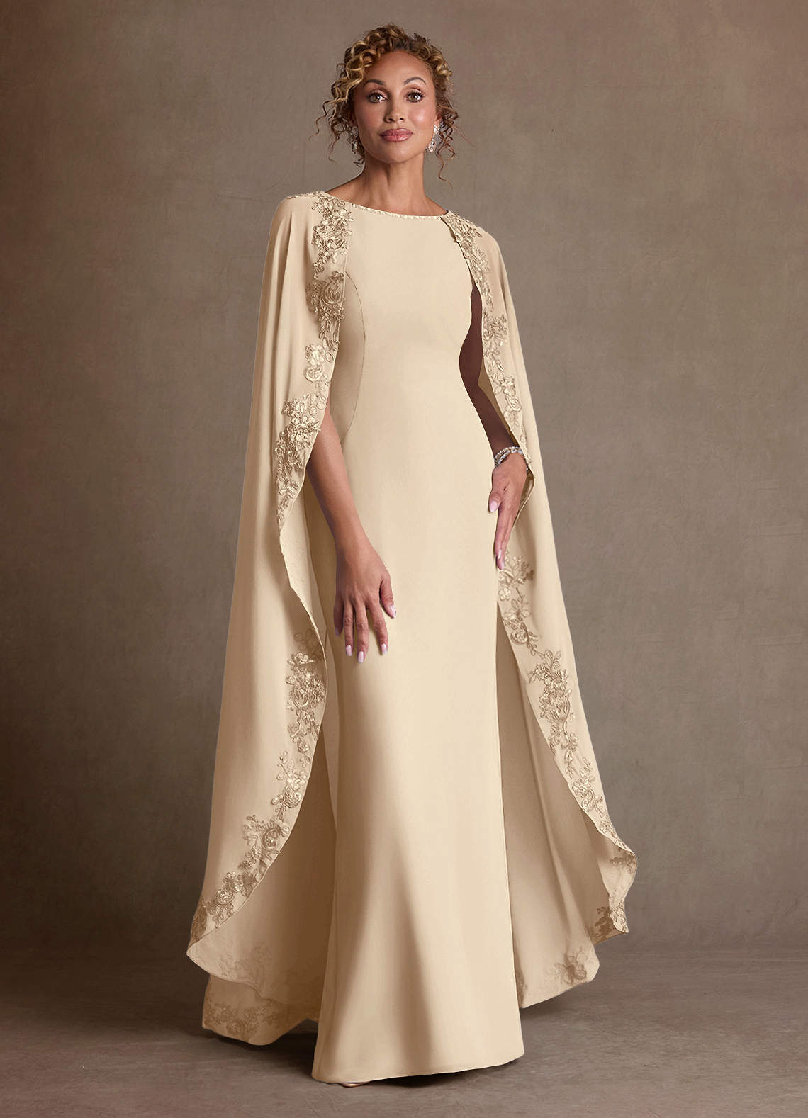 쉬스 레이스 쉬폰 플로어 길이 드레스