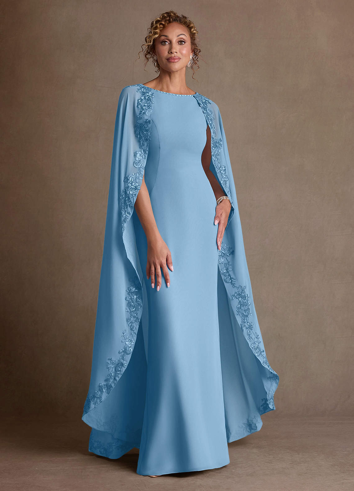 쉬스 레이스 쉬폰 플로어 길이 드레스