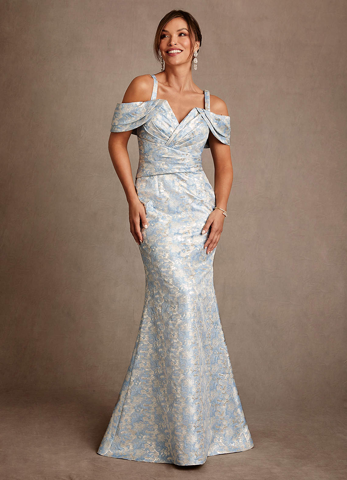 인어 오프 더 숄더 플로럴 자카드 플로어 길이 드레스