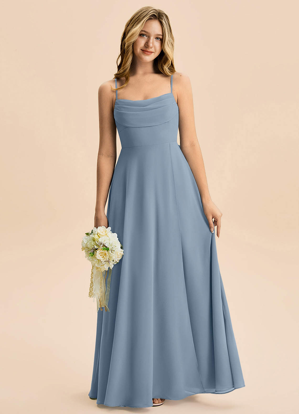 A라인 주름진 쉬폰 플로어 길이 주니어 신부 들러리 드레스