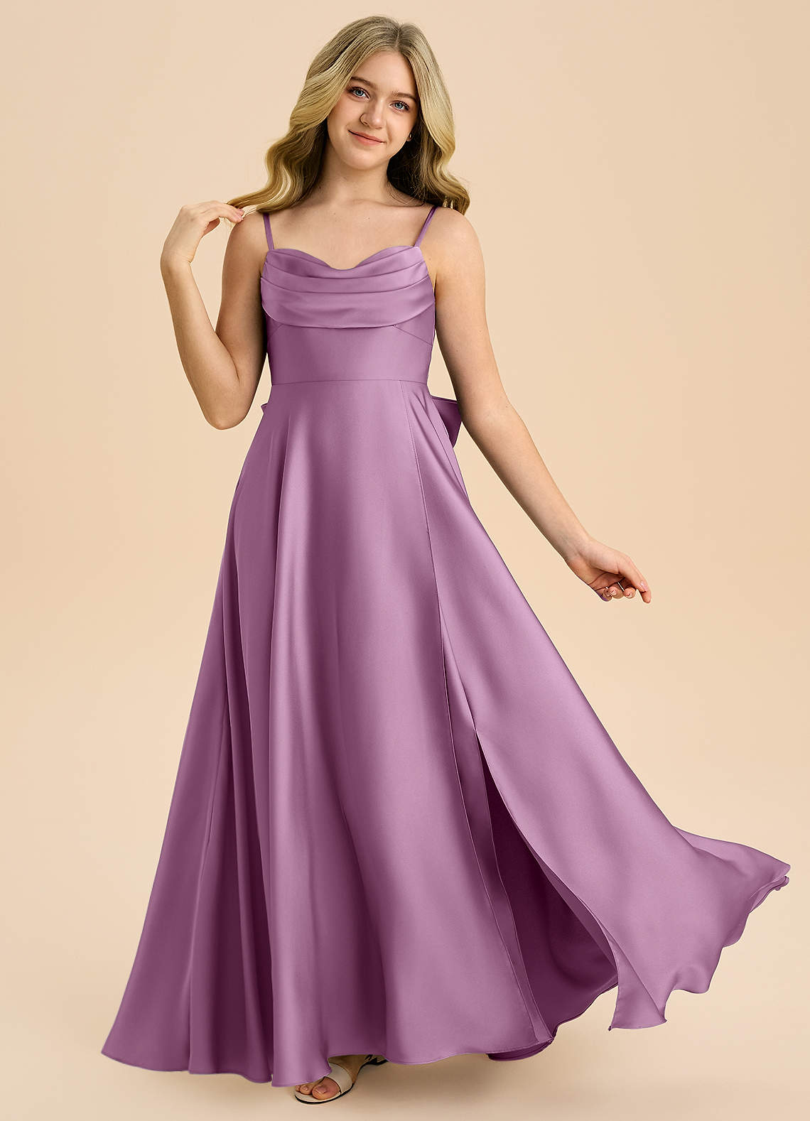 A라인 스윗하트 네크라인 스트레치 새틴 플로어 길이 주니어 신부 들러리 드레스
