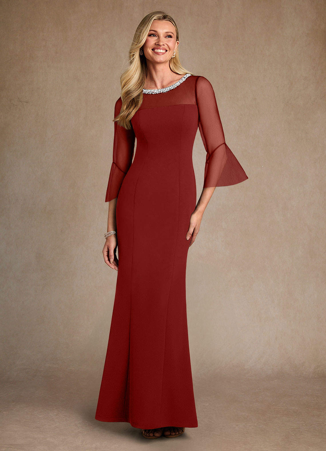 쉬스 구슬 스트레치 크레이프 플로어 길이 드레스