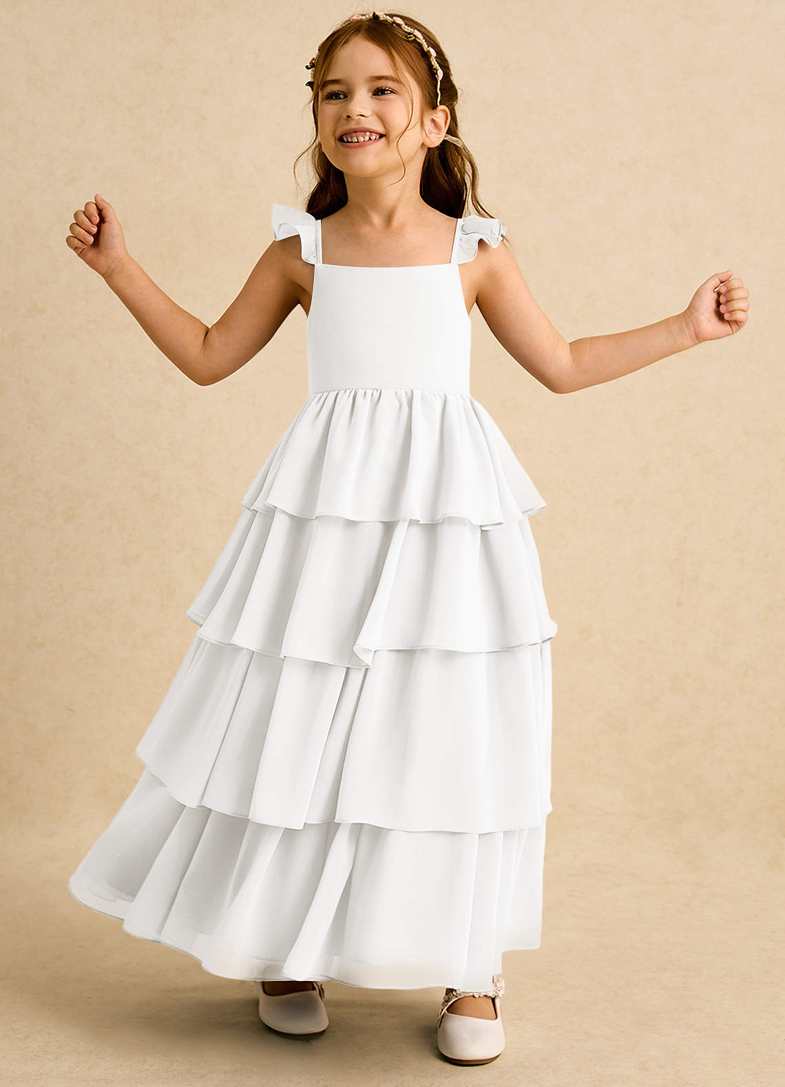 A라인 스퀘어 네크라인 쉬폰 발목 길이 드레스