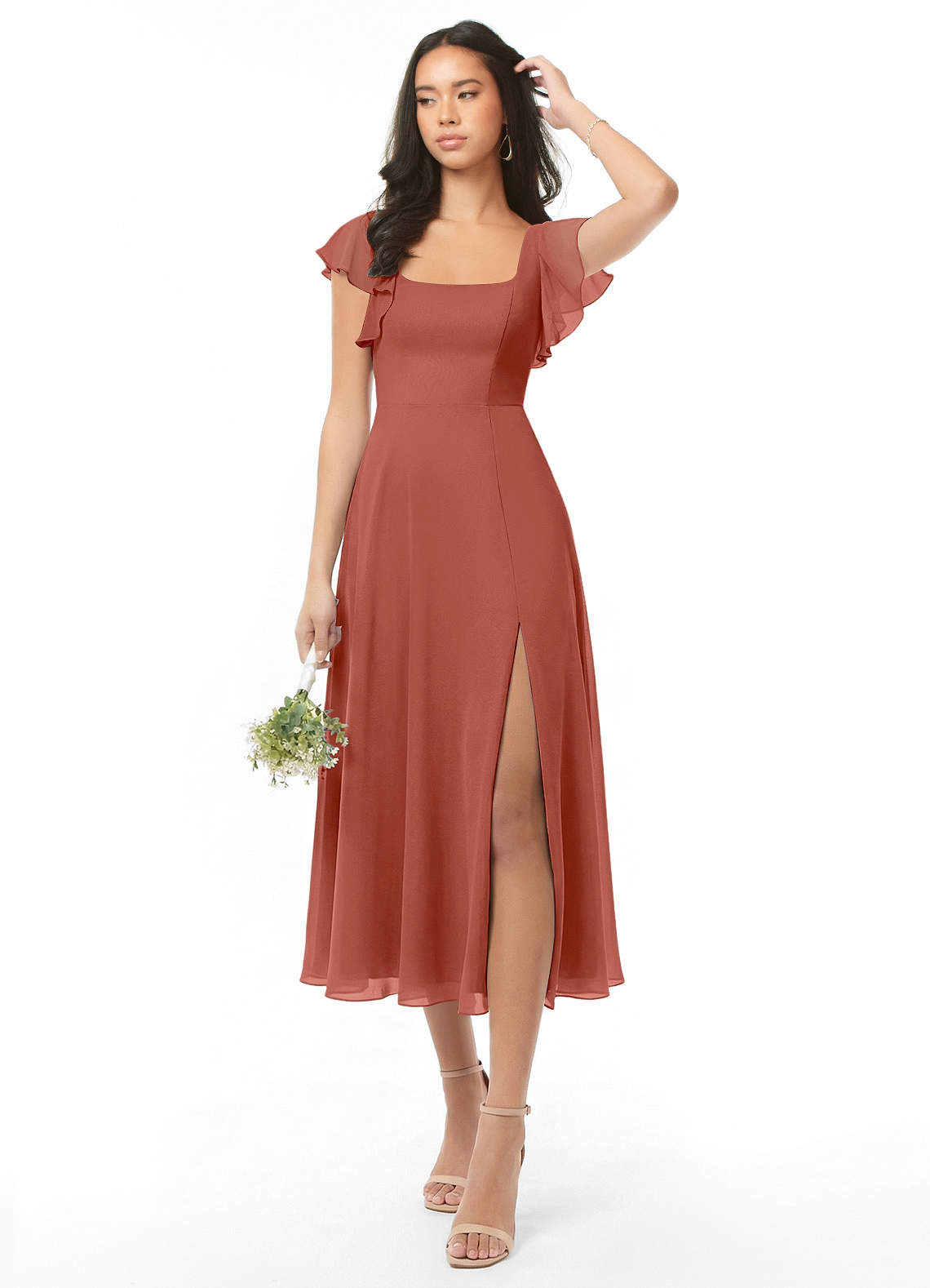 A라인 셔링 쉬폰 티 길이 드레스