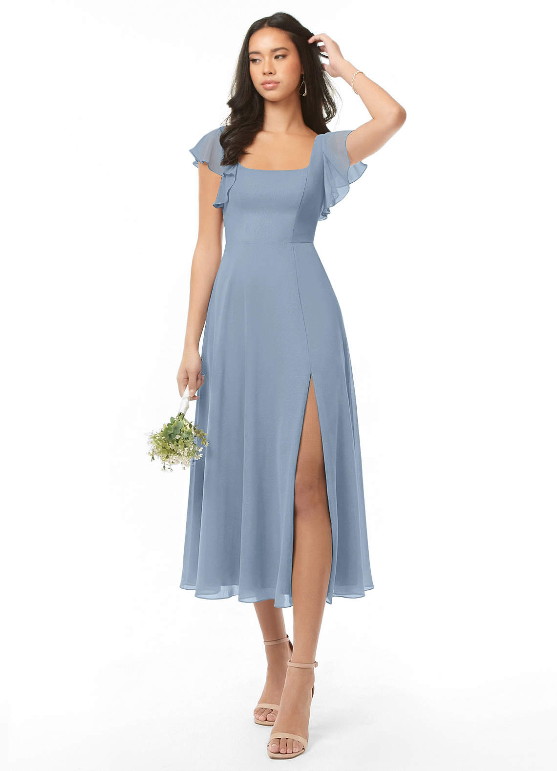 A라인 셔링 쉬폰 티 길이 드레스