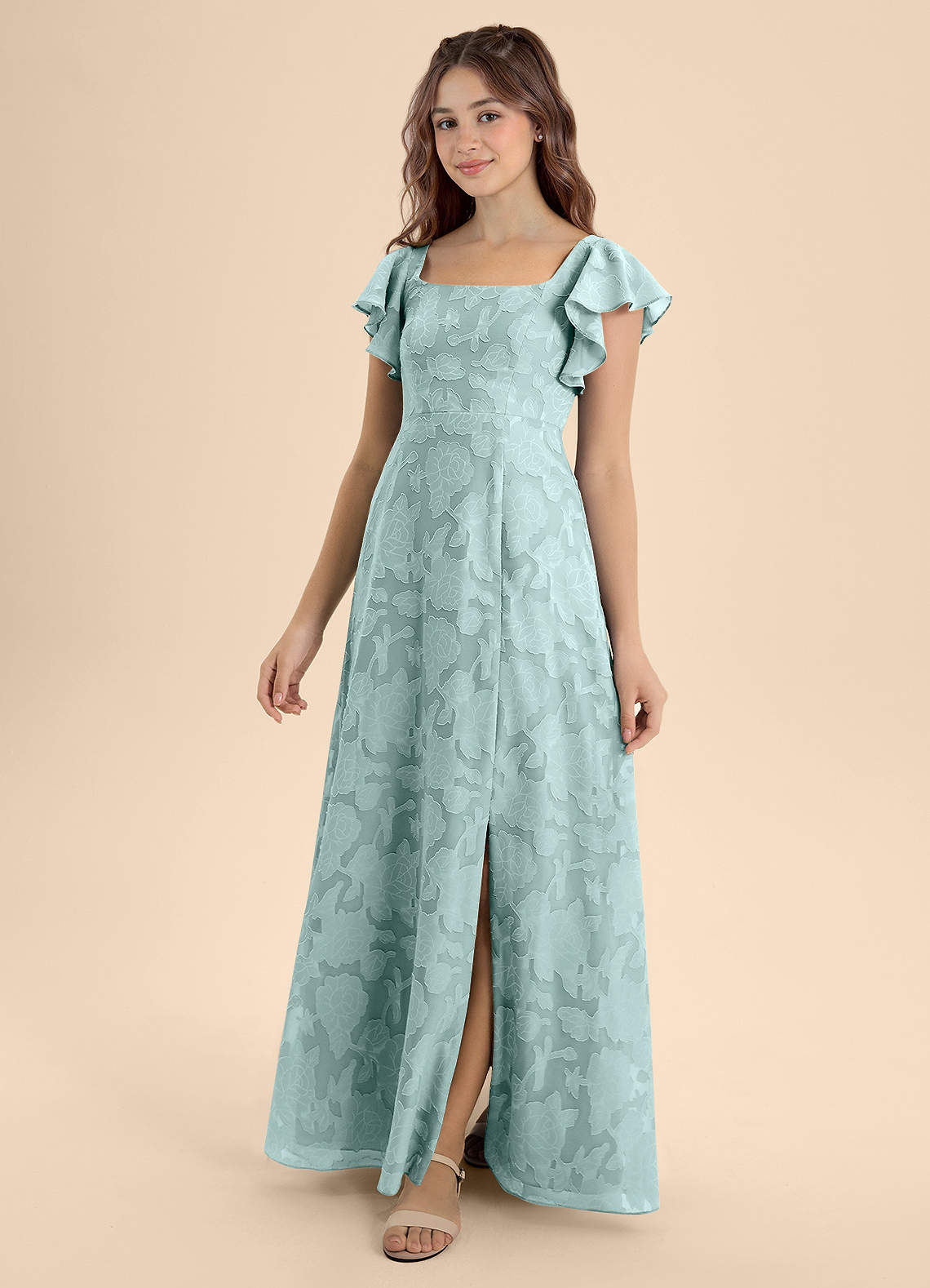 A라인 절하다 플로럴 번아웃 플로어 길이 주니어 신부 들러리 드레스