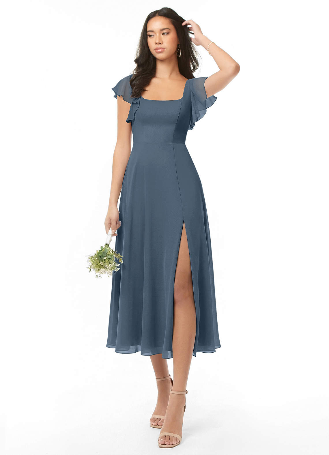 A라인 셔링 쉬폰 티 길이 드레스