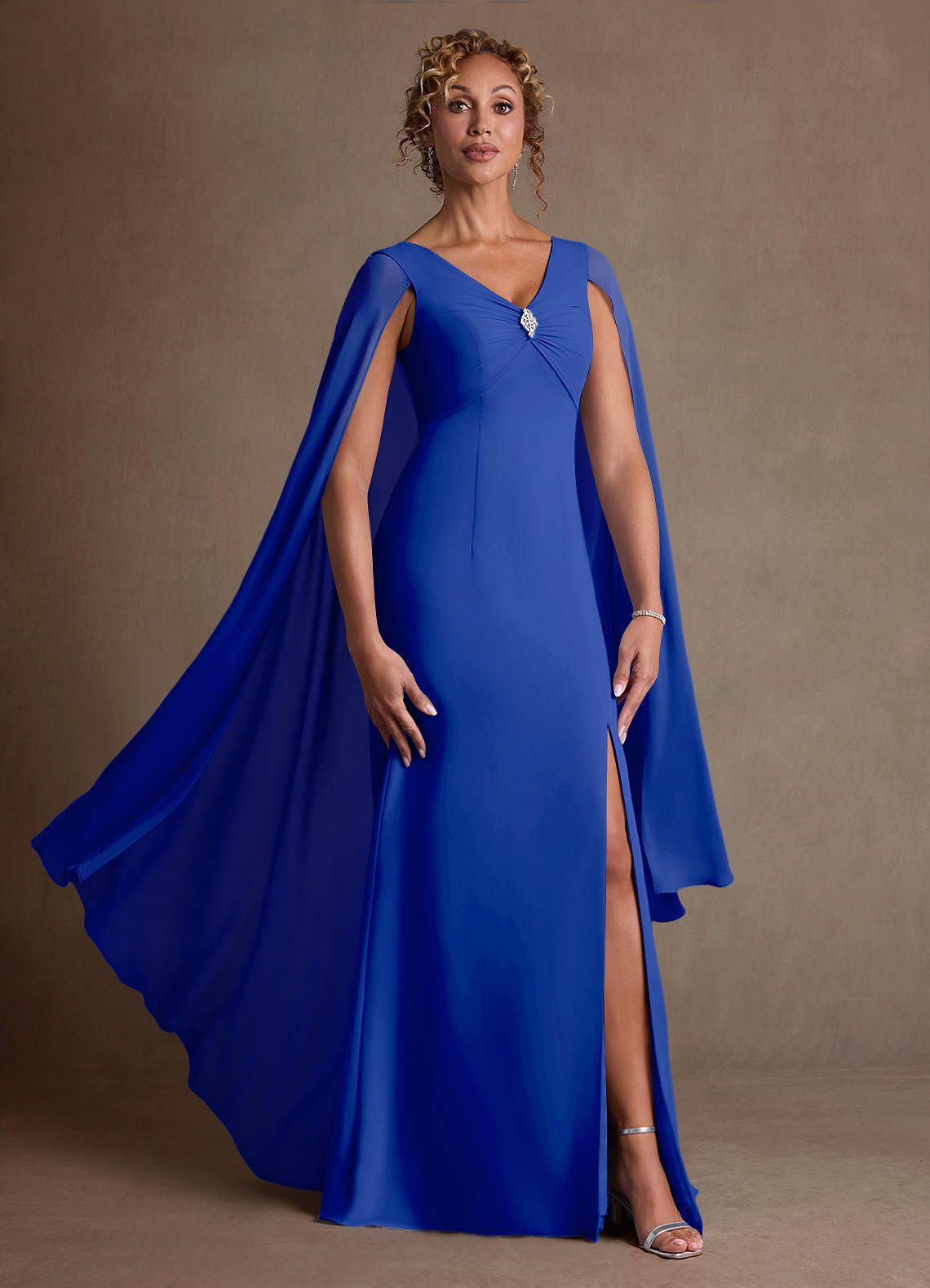 A라인 주름진 쉬폰 플로어 길이 드레스