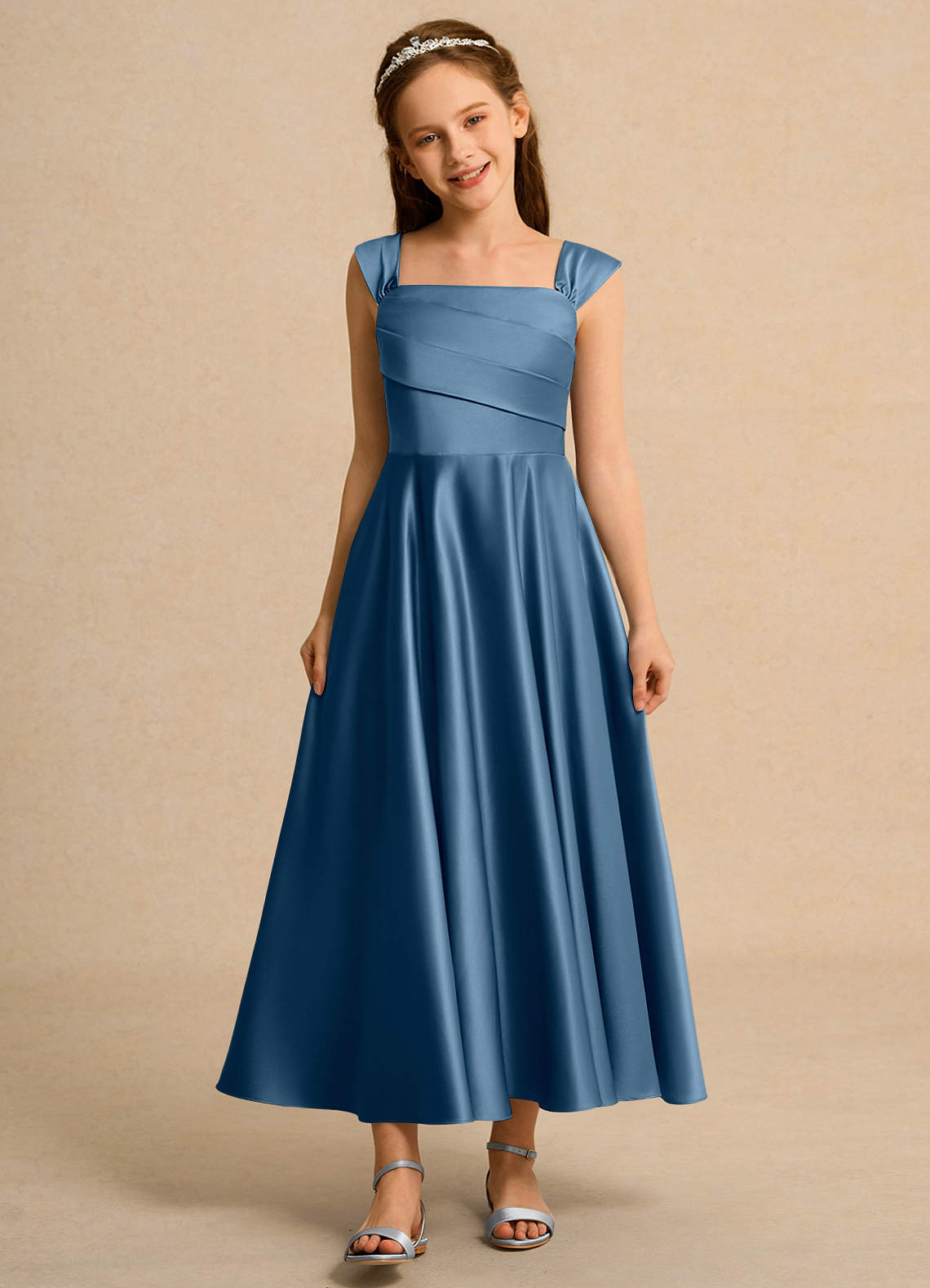 A라인 주름진 매트 새틴 발목 길이 드레스
