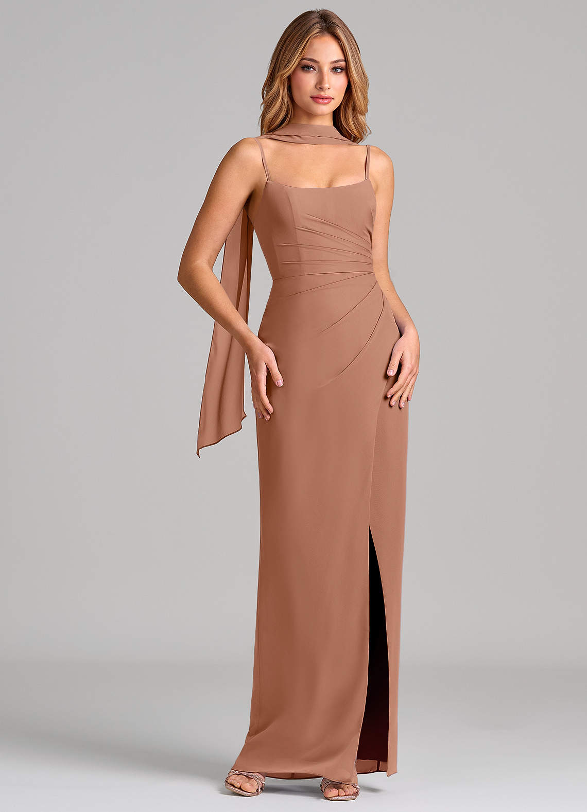 쉬스 주름진 쉬폰 바닥 길이 드레스