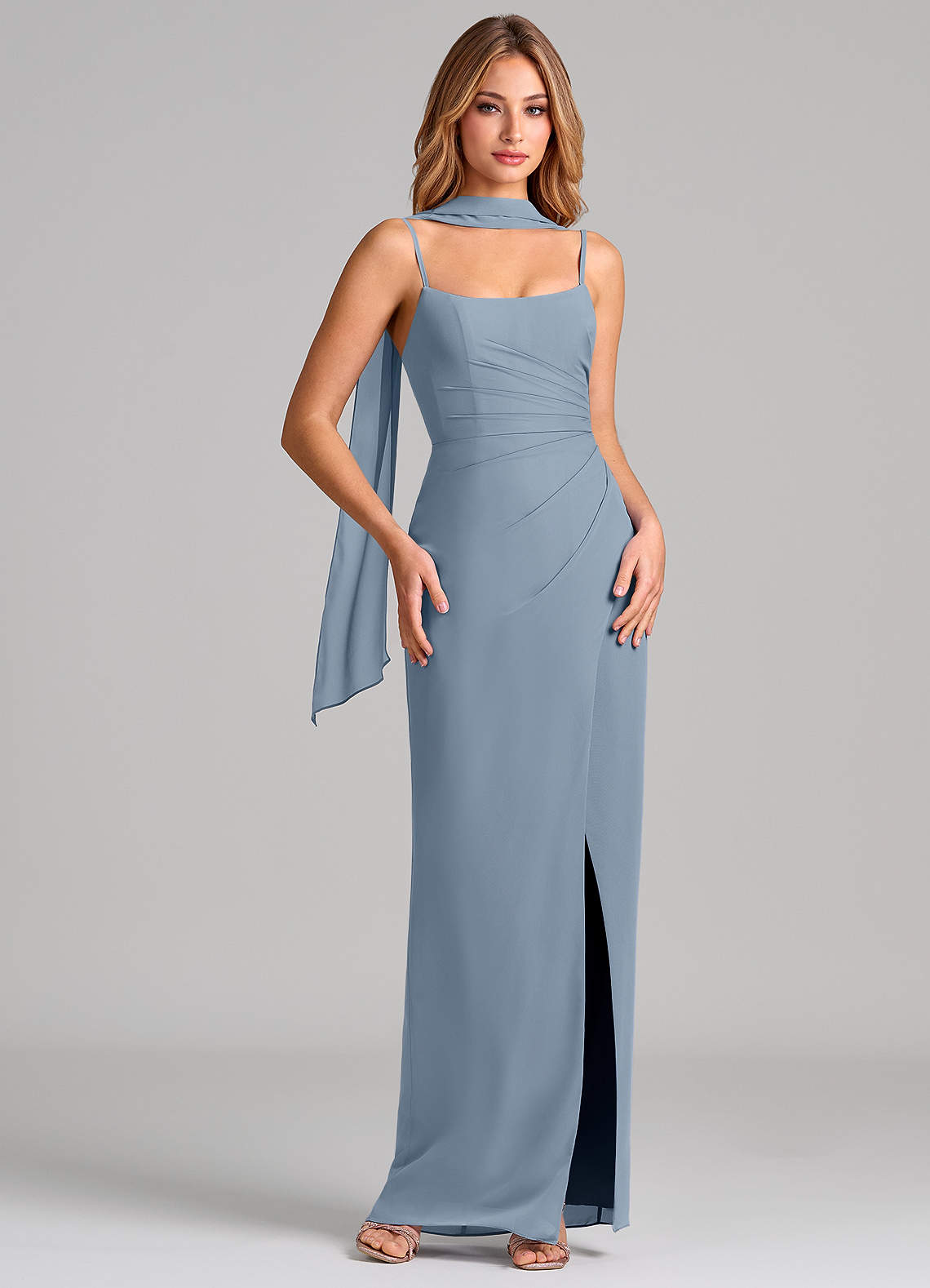 쉬스 주름진 쉬폰 바닥 길이 드레스