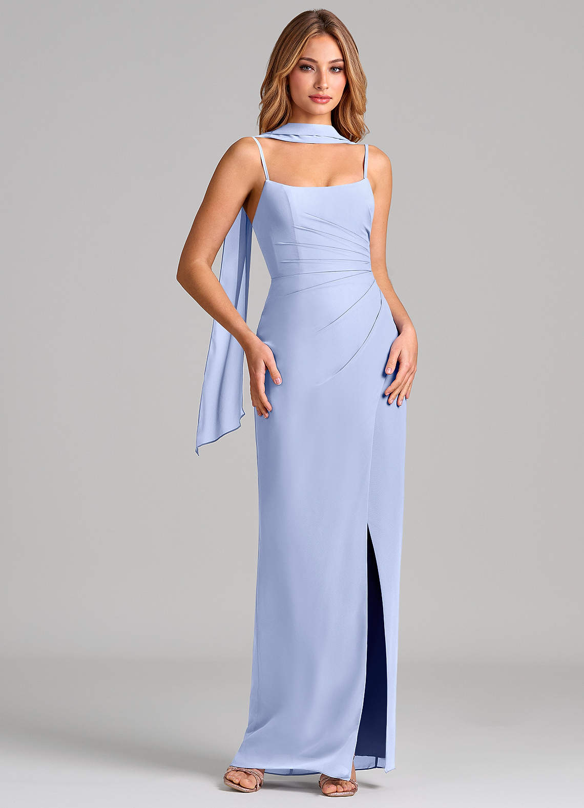 쉬스 주름진 쉬폰 바닥 길이 드레스