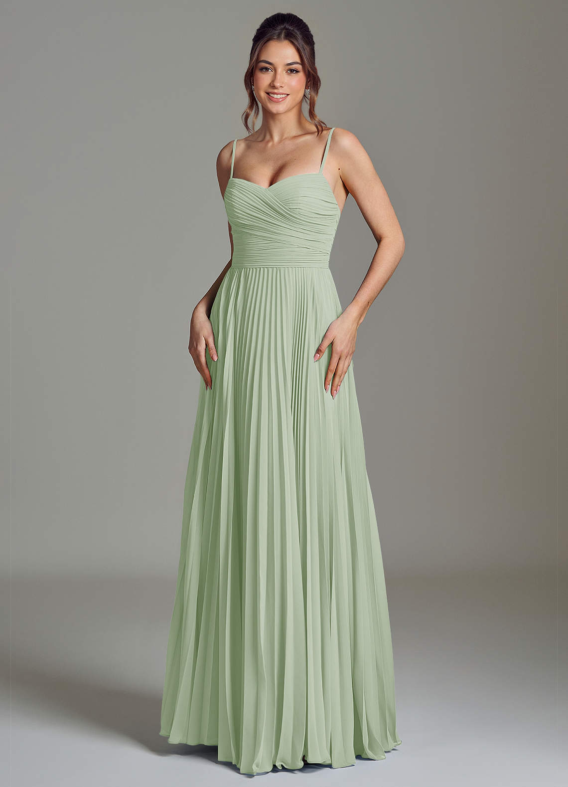 Azazie Catie 신부 들러리 드레스 A라인 스윗하트 네크라인 쉬폰 바닥 길이 드레스 image1