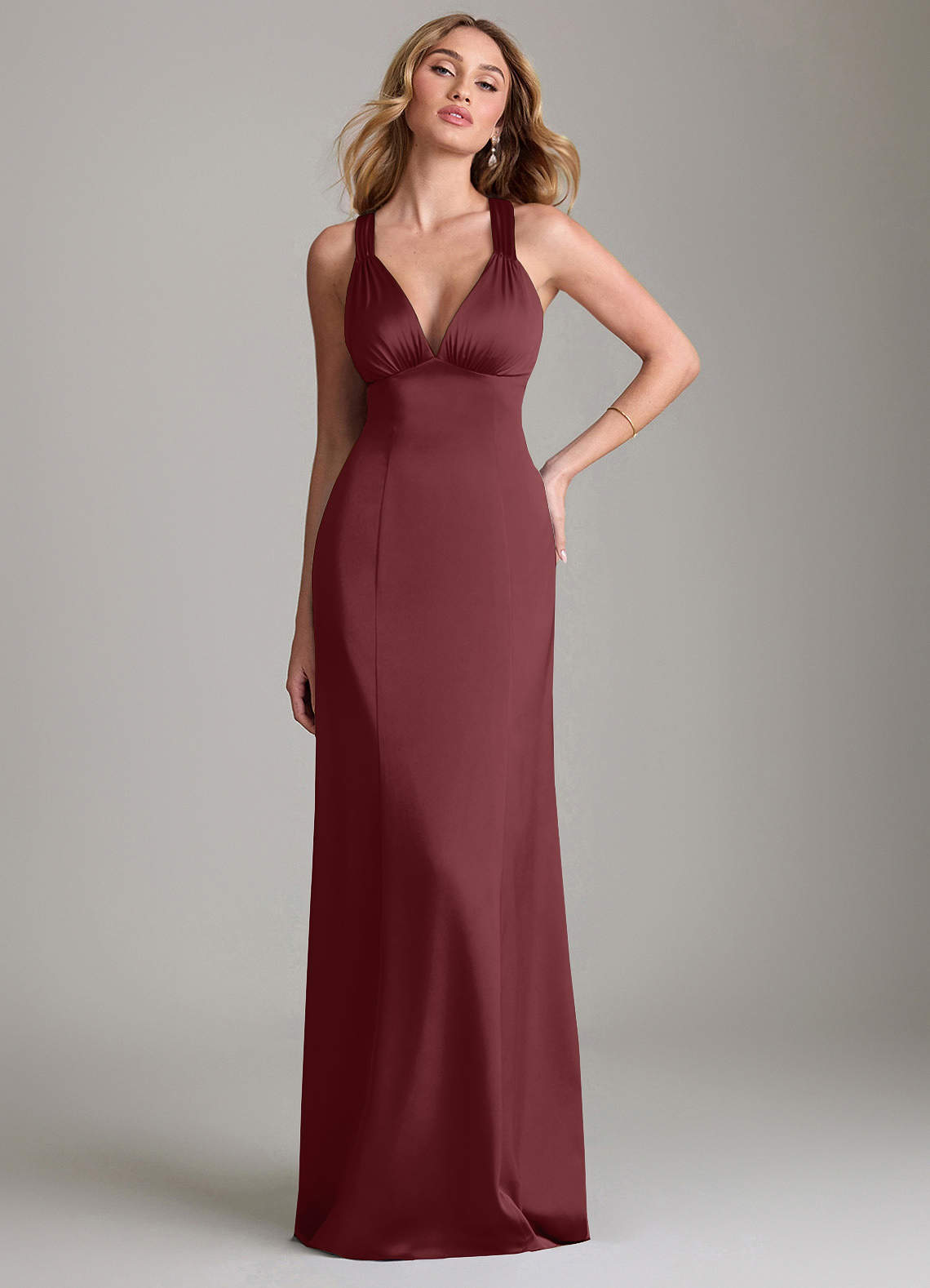 A라인 스트레치 새틴 바닥 길이 드레스