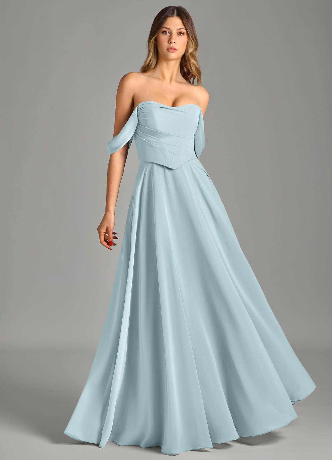 A라인 오프 더 숄더 쉬폰 바닥 길이 드레스
