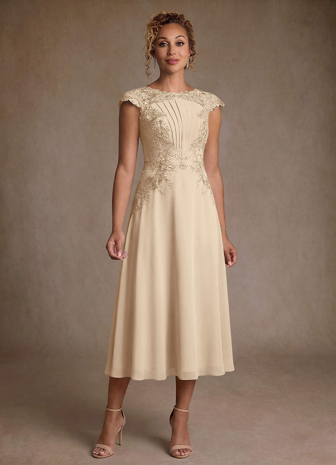 A라인 레이스 쉬폰 티 길이 드레스
