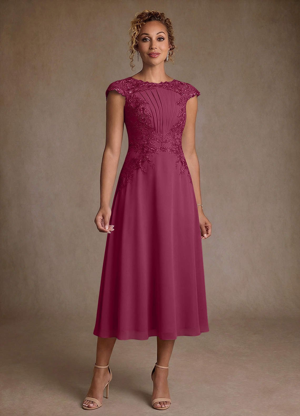 A라인 레이스 쉬폰 티 길이 드레스