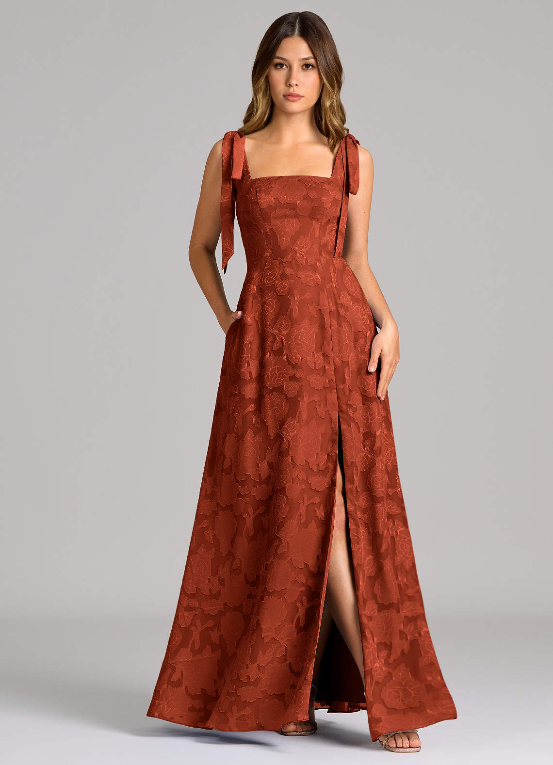 A라인 포켓이 있는 플로럴 번아웃 바닥 길이 드레스