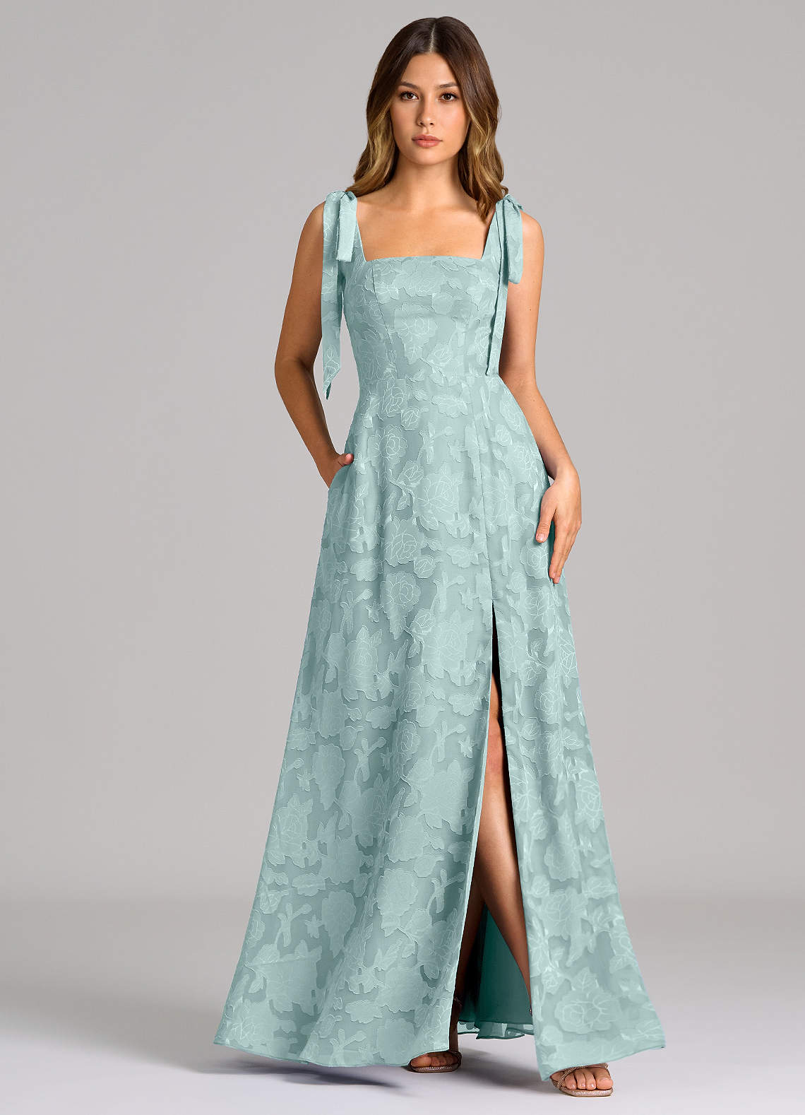 A라인 포켓이 있는 플로럴 번아웃 바닥 길이 드레스