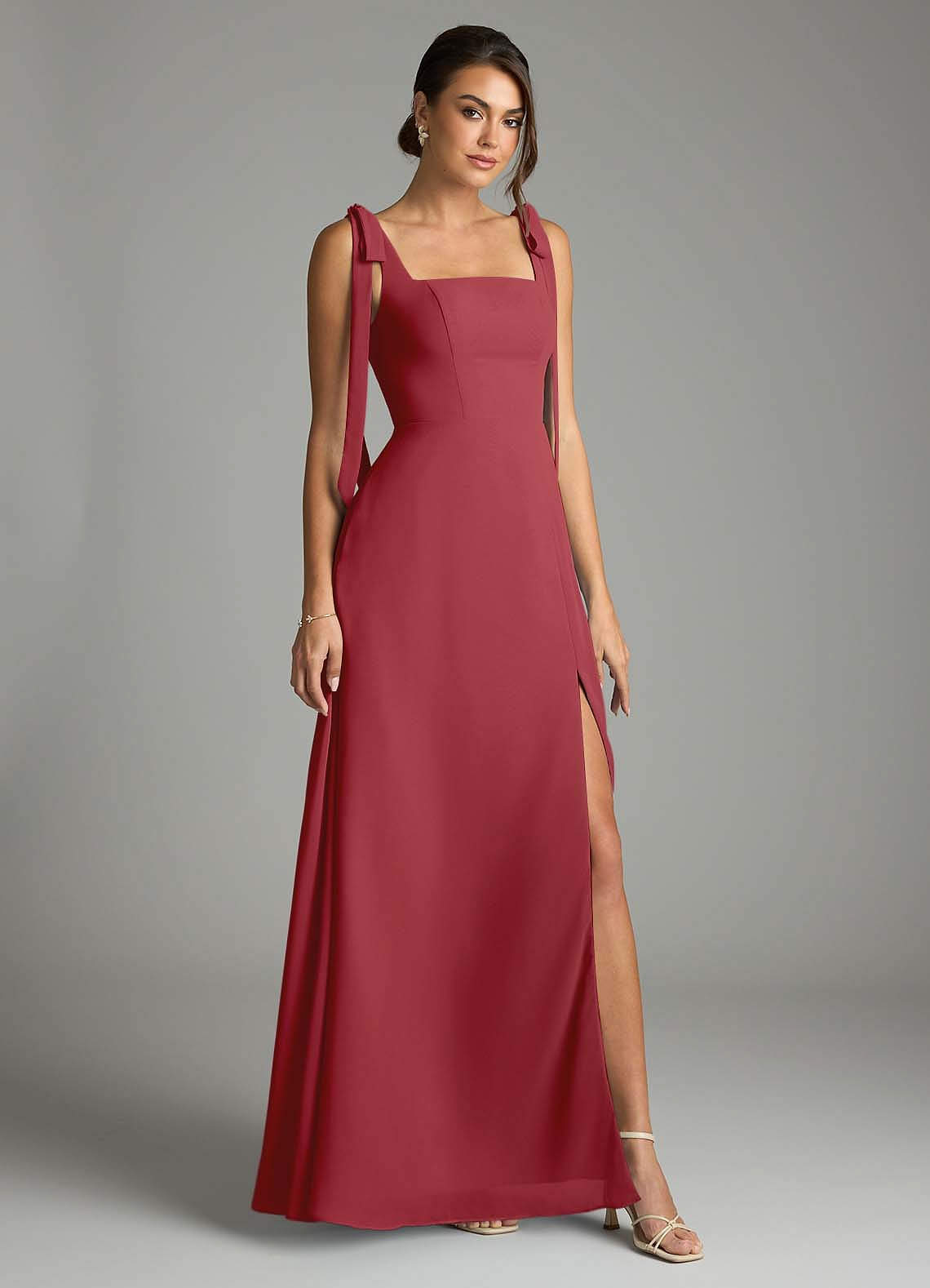 A라인 포켓이 있는 쉬폰 바닥 길이 드레스