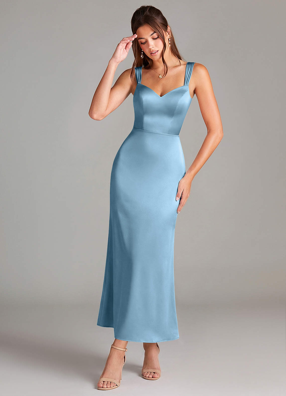 쉬스 주름진 스트레치 새틴 발목 길이 드레스
