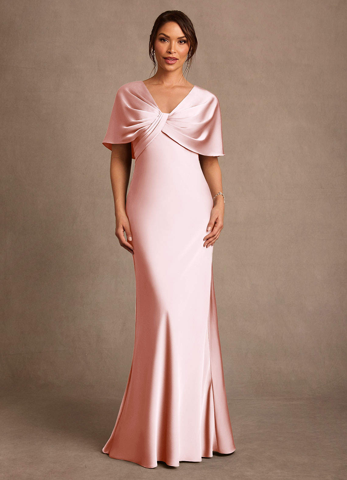 쉬스 주름진 스트레치 새틴 플로어 길이 드레스