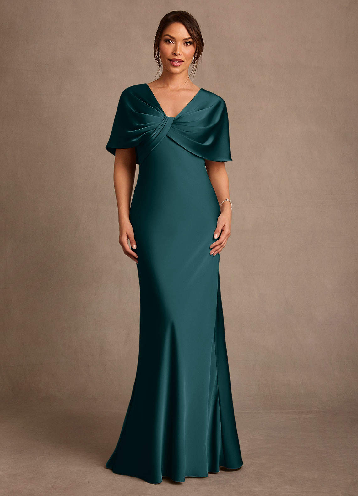 쉬스 주름진 스트레치 새틴 플로어 길이 드레스
