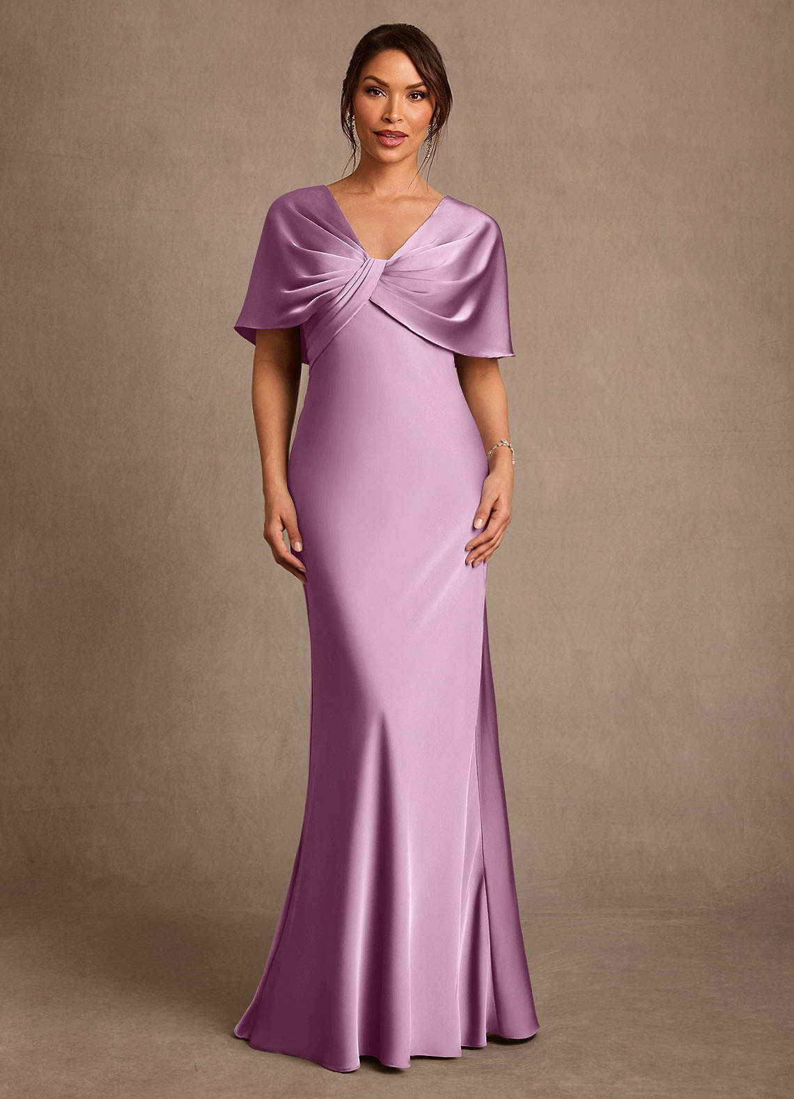 쉬스 주름진 스트레치 새틴 플로어 길이 드레스
